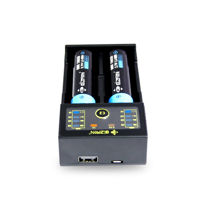 Eizfan C2 Battery Charger for 3.2V 3.7V Battery 2 Slots USB Battery Charger with Power Bank LED Light